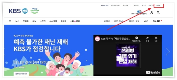 ▼ 홈페이지 우측 상단에 "편성표"을 클릭해 주세요. (바로가기)