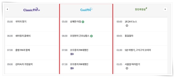 ▼ 좌우측 화살표을 클릭하여 COOLFM을 찾으면 방송시간을 보실 수 있습니다.