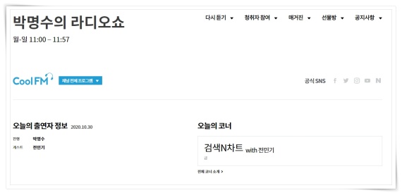 장시간 운전을 하다보면 졸음을 몰려오거나 무료할 때가 많습니다. 이럴 때 라디오를 들으면 큰 도움이 되는데요. 요즘 꽂힌 라디오는 '박명수의 라디오쇼'입니다. 성대모사 달인을 찾아라, 모발모발 퀴즈쇼, 에대박 등 다양한 코너들로 재미를 선사하고 있는데요. 또 박명수의 입담을 더해지니 웃음이 빵빵 터집니다. 박명수의 라디오쇼는 오전 11시부터 12까지 한 시간만 진행되어 아쉬움이 많이 남습니다. 그래서 라디오 COOLFM에서는 어떤 프로그램들로 구성되어 있는지 궁금하더군요.