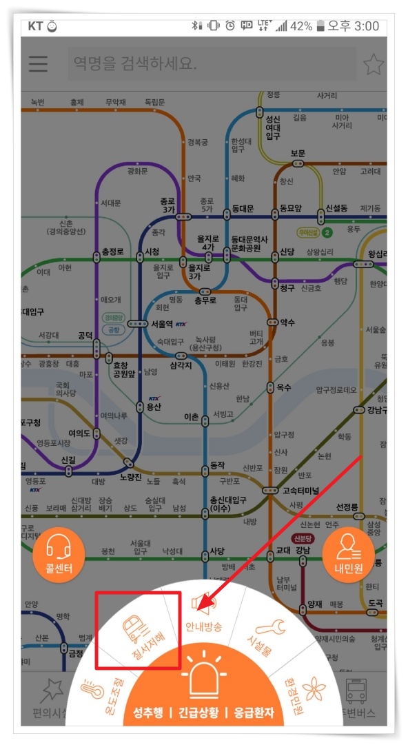 ▼ 그런데 신고는 서울지하철 1~8호선 전동차 내에서만 신고가 가능합니다. 그외 지역은 콜센터 문자전송 또는 전화걸기를 이용해 보세요.