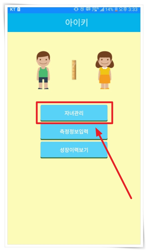 ▼ 앱 실행 후 "자녀관리"에서 자녀 정보를 입력해 주세요.