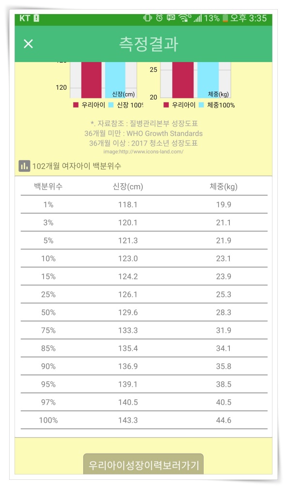 아이키 앱은 간단히 자녀 생년월일을 등록하고 신장과 체중을 등록하면 해당 나이의 신장, 체중 백분위를 확인할 수 있는 어플입니다. 먼저 구글플레이스토어에서 앱을 설치해 주세요. (바로가기)
