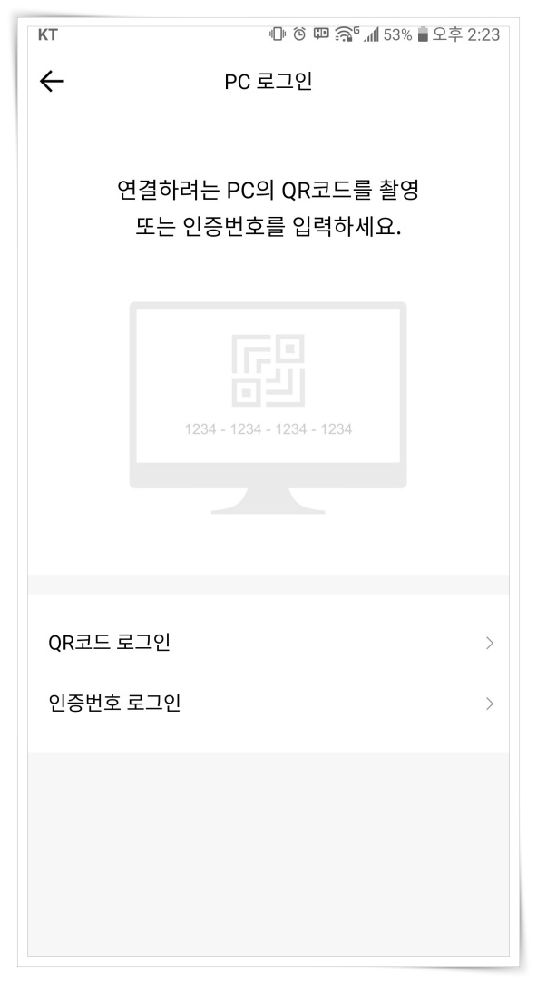 ▼ 로그인 창에 보이는 QR코드를 스마트폰으로 촬영해 주세요.