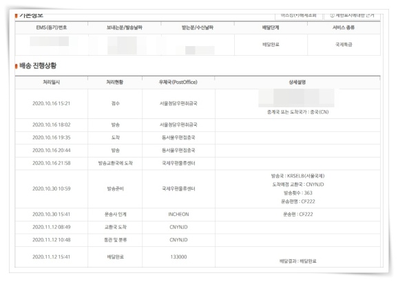 ▼ 문제가 발생하여 해외우정청에 연락하고 싶다면 하단 연락처를 클릭해 보세요.