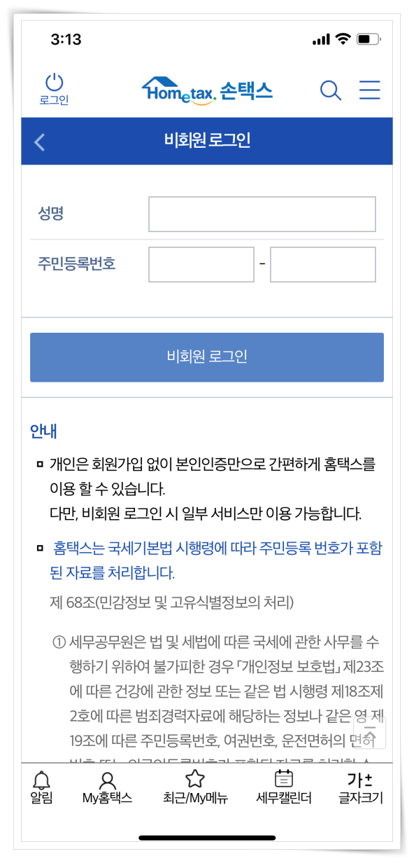 국세청 홈택스 앱 설치 및 예상세액 조회하기