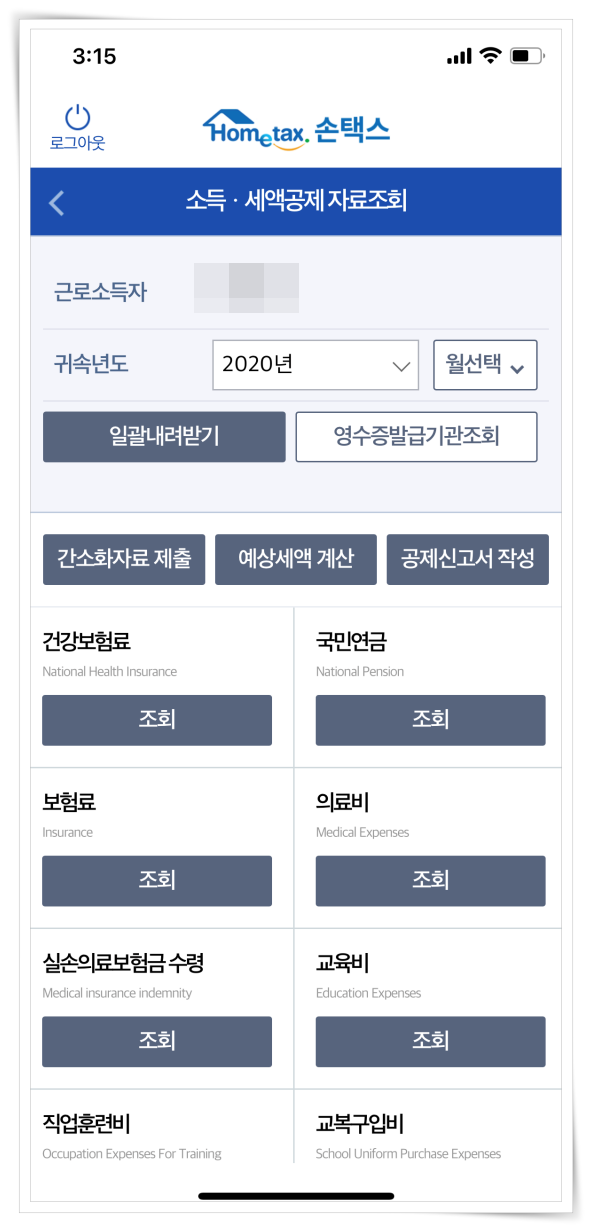 ▼ 소득 세액 공제 자료 조회 후 예상세액 계산을 클릭해 주세요.