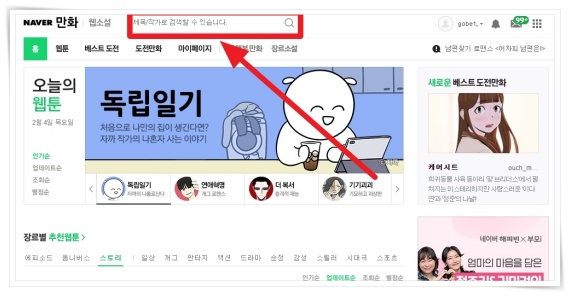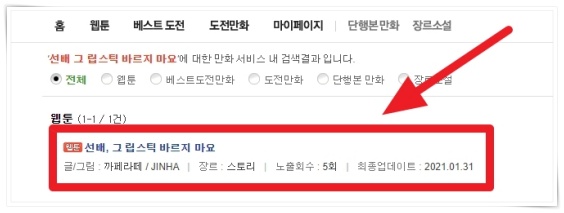 ▼ 검색결과에서 웹툰을 찾아 클릭해 주세요.