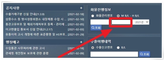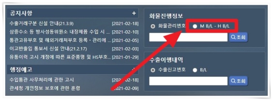 ▼ 유니패스 홈페이지 화물진행정보 검색창에서 "M B/L"을 체크해 주세요. (바로가기)