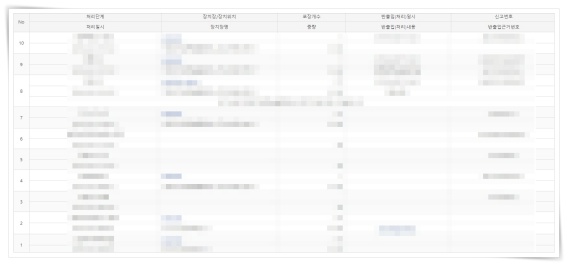 ▼ 좀더 아랫쪽으로 스크롤을 내려보면 날짜별 처리단계와 상황을 보실 수 있습니다.