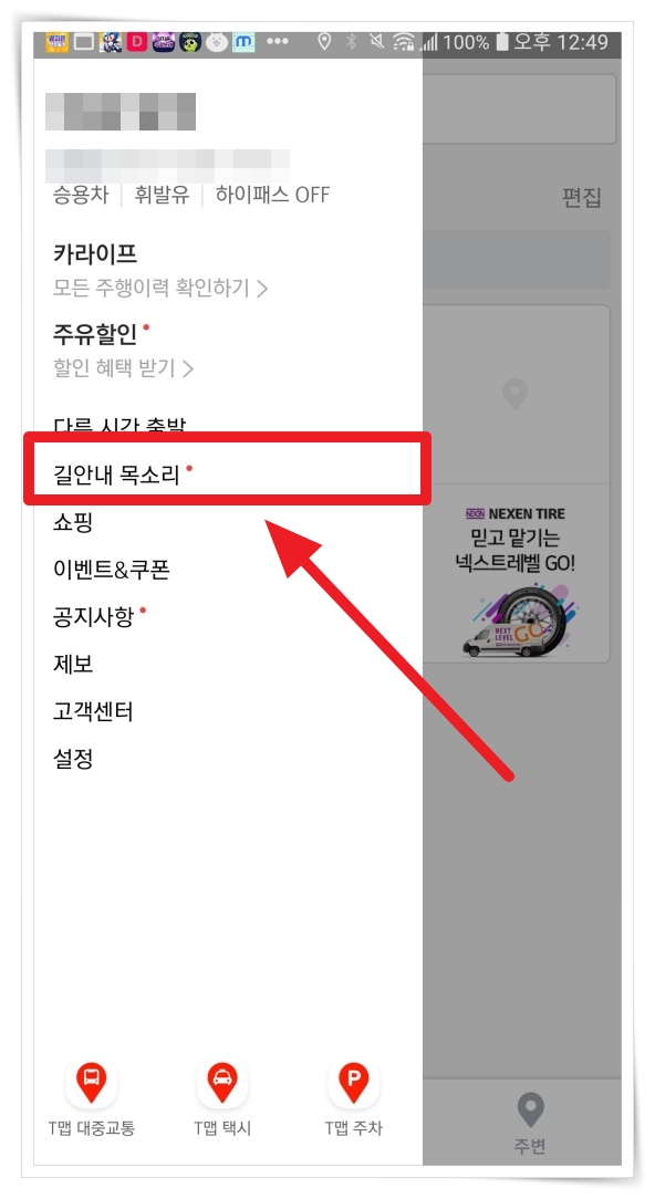 ▼ 메뉴에서 "길안내 목소리"을 클릭해 주세요.