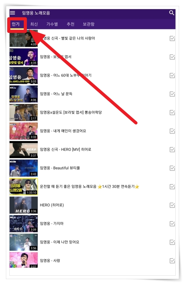 ▼ 앱 설치 후 상단 메뉴에서 "인기" 또는 "최신"을 클릭해 주세요. (앱 설치하기)