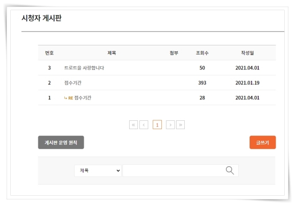 ▼ 그리고 홈페이지 게시판을 통해 응원 및 정보 공유가 가능합니다.