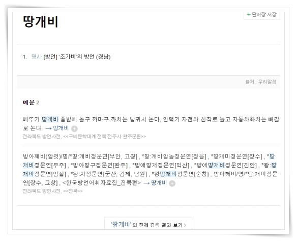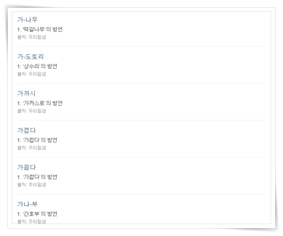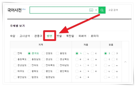 ▼ 국어사전 메뉴에서 "방언"을 선택해 주세요. (바로가기)