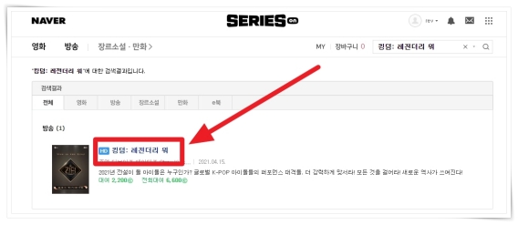 ▼ 검색 결과에서 방송을 클릭해 주세요.