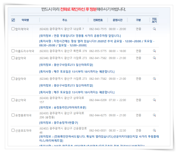 ▼ 이밖에도 연중무휴약국, 공공심야약국을 검색하실 수 있어요.