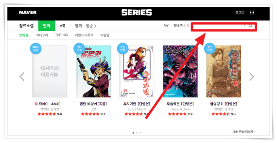 ▼ 네이버 시리즈 우측 상단 검색창에 "제목"을 검색해 주세요. (바로가기)