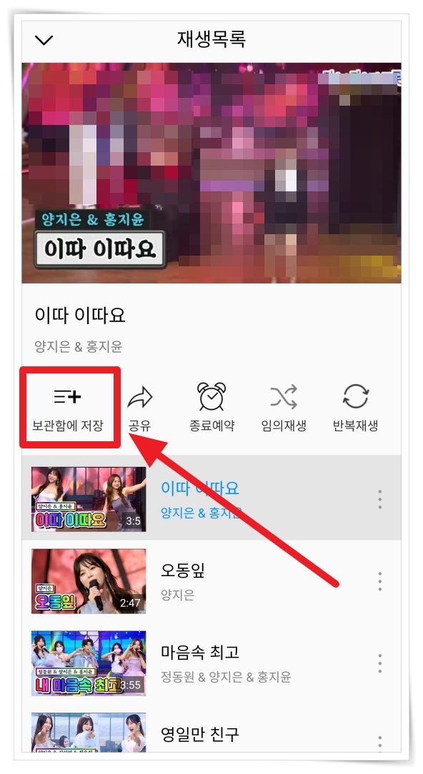 2. 그러면 영상과 함께 음악을 들을 수 있는데요. 마음에 드셨다면 "보관함에 저장"을 클릭해 주세요.