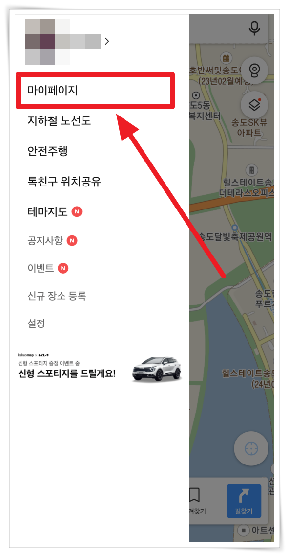 2. 메뉴에서 "마이페이지"를 클릭해 주세요.
