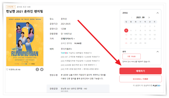 아래는 런닝맨 온라인 팬미팅 예매 방법입니다. 참고하셔서 유용하게 사용해 보세요.