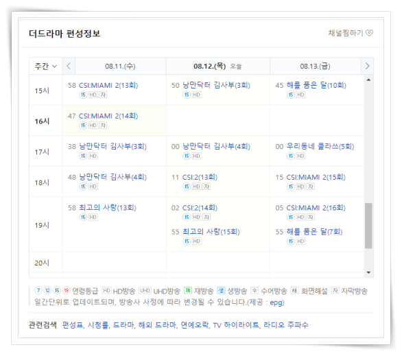 4. 그러면 주간 편성 정보를 쉽게 보실 수 있습니다.