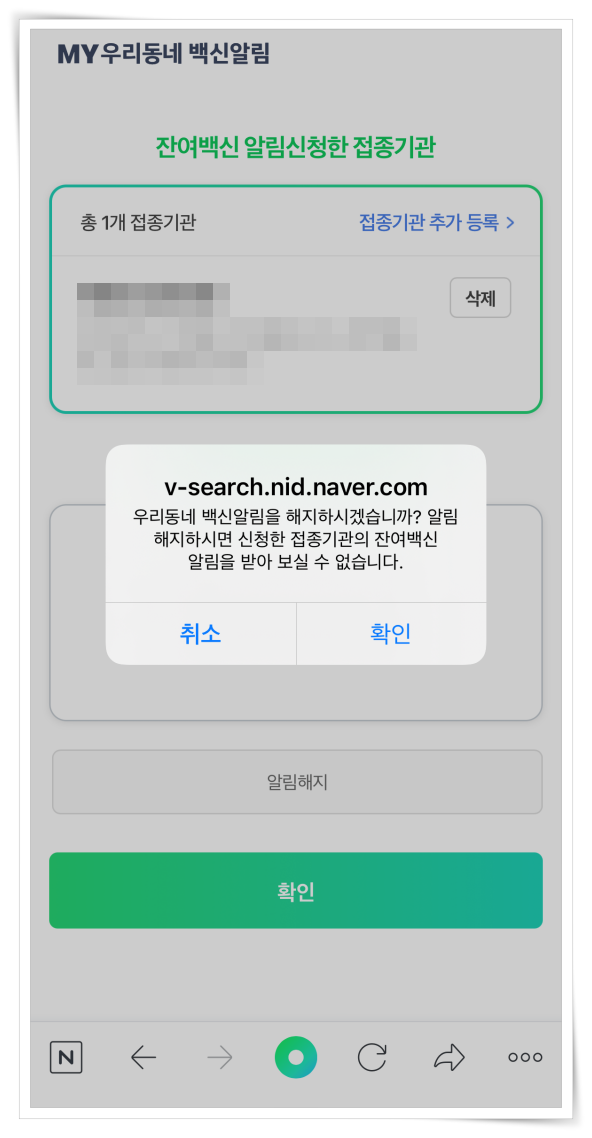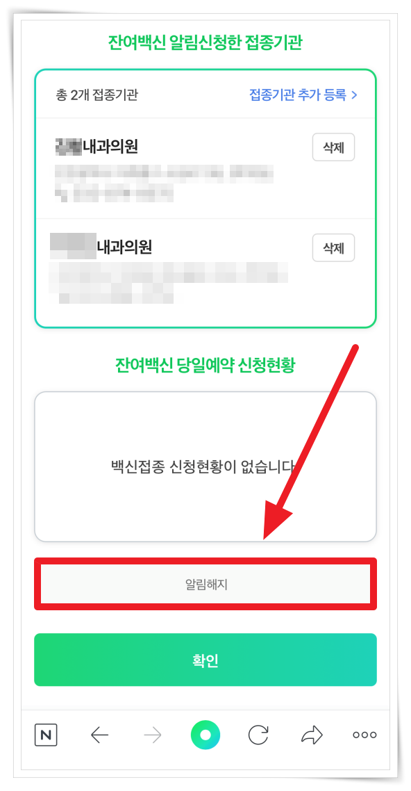 3. 그러면 신청한 모든 접종기관의 알림이 해지됩니다.