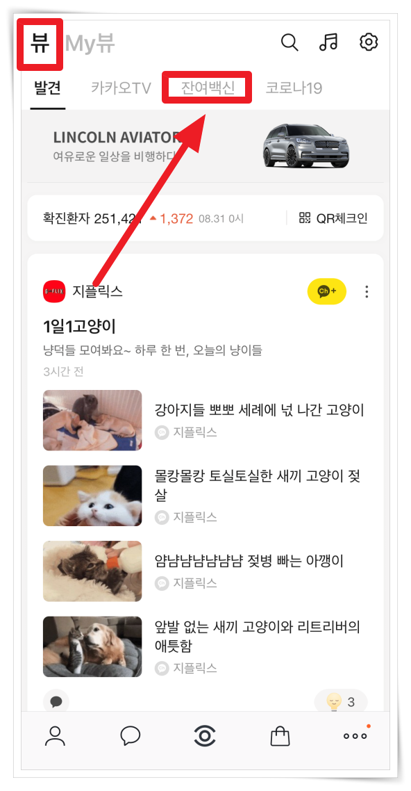 1. 카카오톡 실행 후 하단 "뷰" 아이콘을 클릭해 주세요.