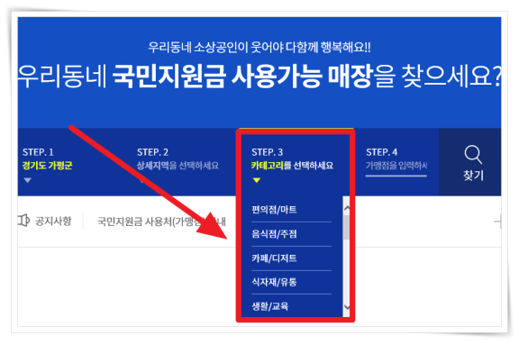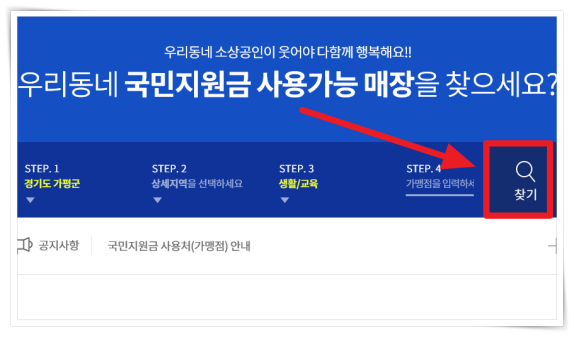 4. 마지막으로 가맹점명을 입력하거나 바로 "찾기"를 클릭해 주세요.