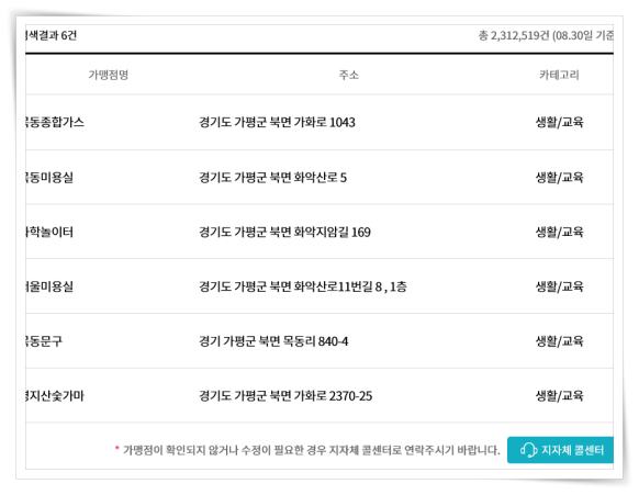 5. 그러면 결과에서 가맹점명 및 주소를 확인해 보실 수 있습니다.
