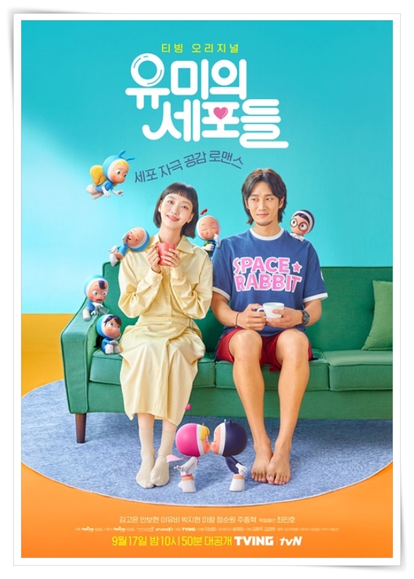 오늘은 유미의 세포들 다시보기 방법을 알아볼게요. 지난 9월 17일 tvn 금, 토요일 드라마 '유미의 세포들' 방송이 시작되었죠. 주인공 배우 김고은과 안보현의 출연으로 방송 전부터 관심을 갖게 되었는데요. 세포를 의인화하여 주인공 유미의 직장, 일상생화과 연애 과정을 사랑스럽게 잘 표현하였습니다. 그녀에게 어떤 상황이 발생하면 감정 세포들이 나와 공방전을 벌이거나, 협력하여 주인공의 행동을 결정하는 과정에서 많은 감정 변화가 표현되며 기발한 상상력이 재미를 더 해줍니다. 이 드라마는2020년 많은 인기를 얻은 이동건 작가의 동명 웹툰을 원작으로 제작되었다고 해요.
