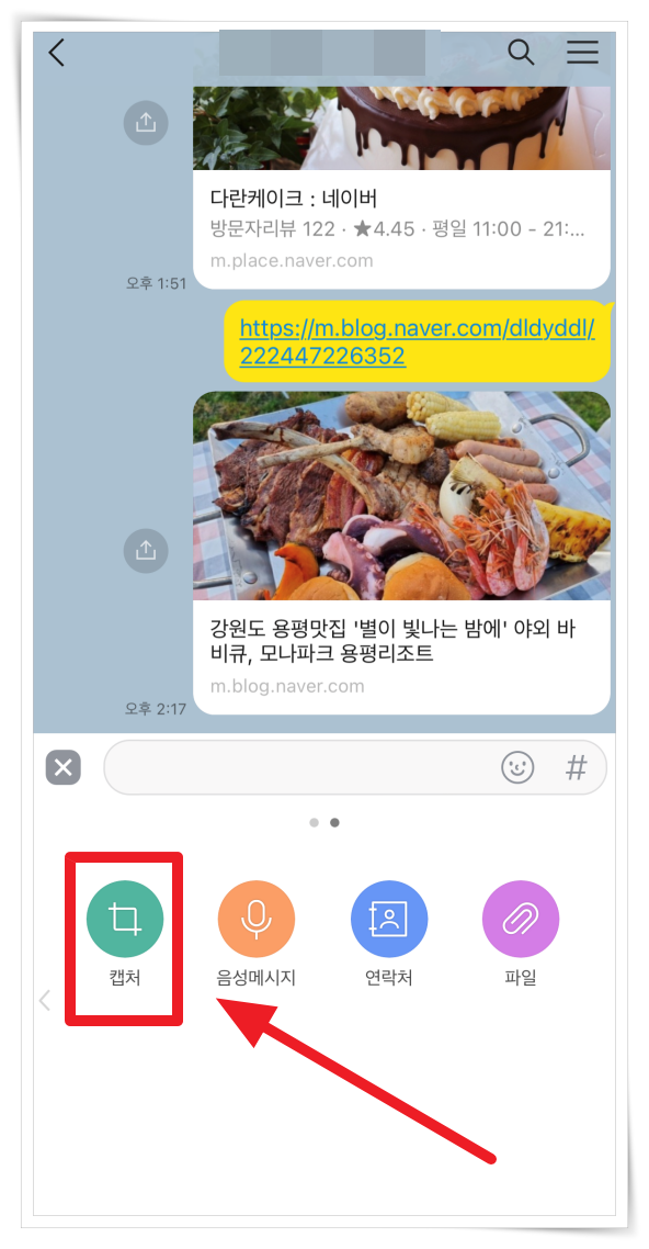 1. 캡처는 텍스트 입력 창 옆에 "+" 버튼을 클릭해 주세요.