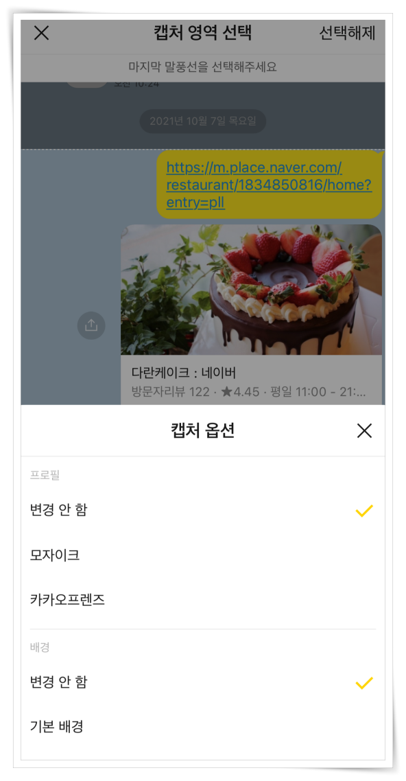 아래는 카카오톡 책갈피 및 캡쳐 설정하는 방법입니다. 참고하셔서 유용하게 활용해 보세요.