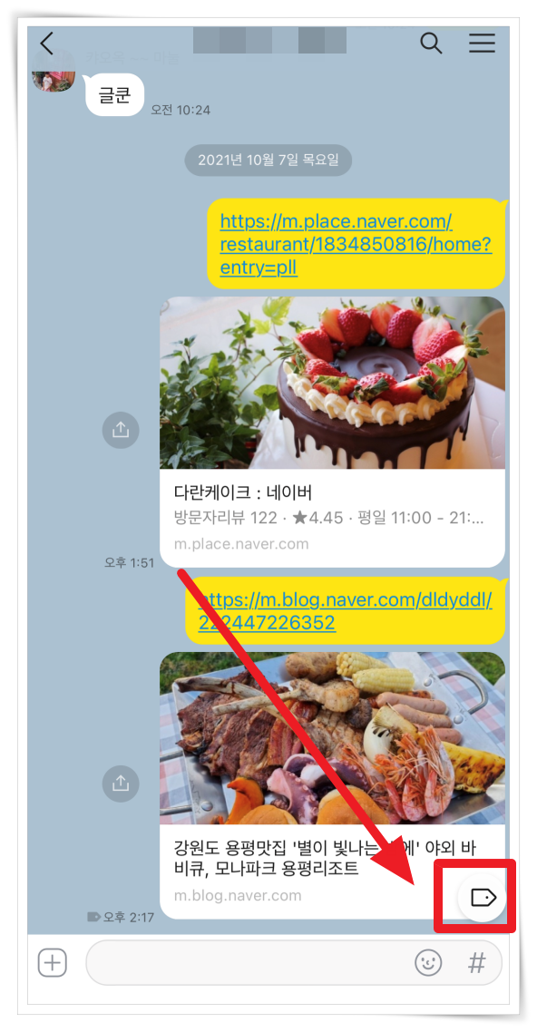 그런데 카카오톡의 많은 대화 속에서 특정 연락처나 메시지를 찾으려니 한참을 뒤적거리며 일명 벽타기를 하게 되는데요. 이럴 때 카톡에서 제공하는 기능을 이용하면 책갈피처럼 표시를 해놓고 한 번에 대화내용을 찾으실 수 있더군요. 이 기능은 단톡방에 한개만 설정할 수 있지만 상당히 유용하 활용할 수 있어요.