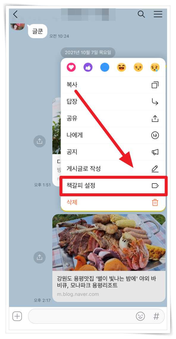 아래는 카카오톡 책갈피 및 캡쳐 설정하는 방법입니다. 참고하셔서 유용하게 활용해 보세요.