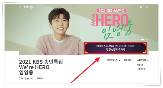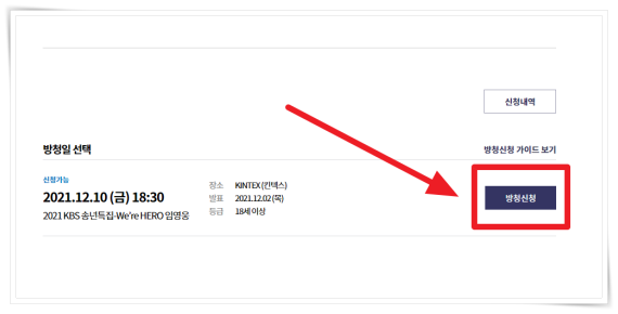 1. KBS 송년특집 상단 "방청 신청 바로가기"를 클릭해 주세요.