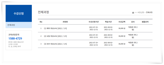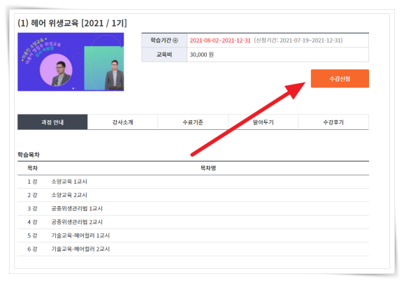 3. 헤어, 네일, 피부 교육 중 선택해서 과정명을 클릭해 주세요.