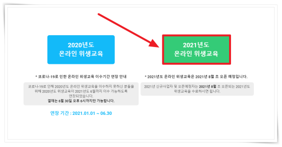 1. 홈페이지에서 위생교육 연도를 선택해 주세요.