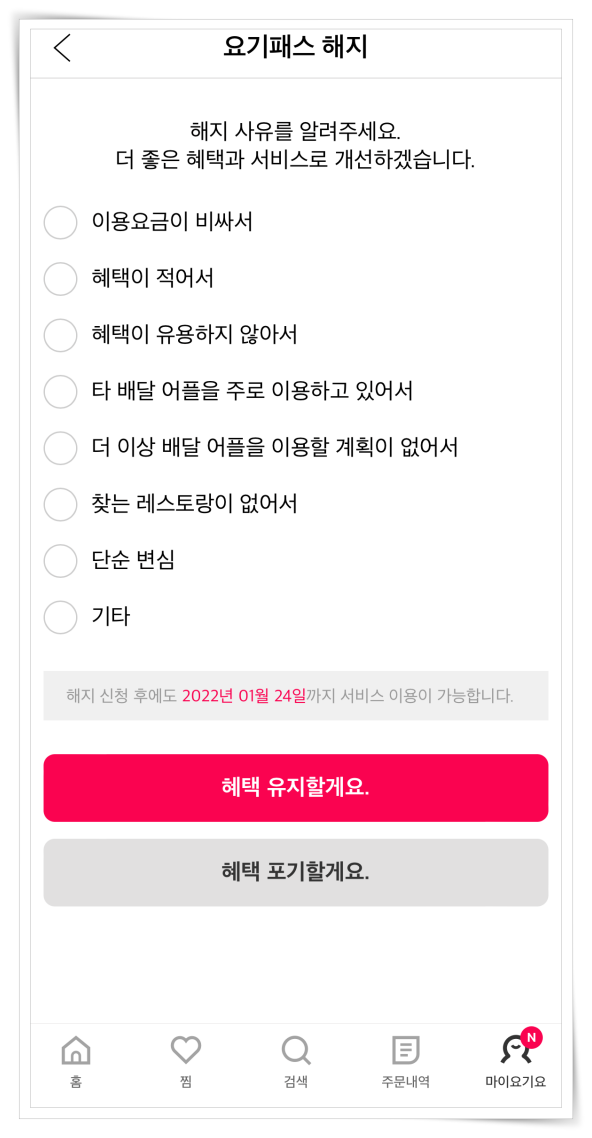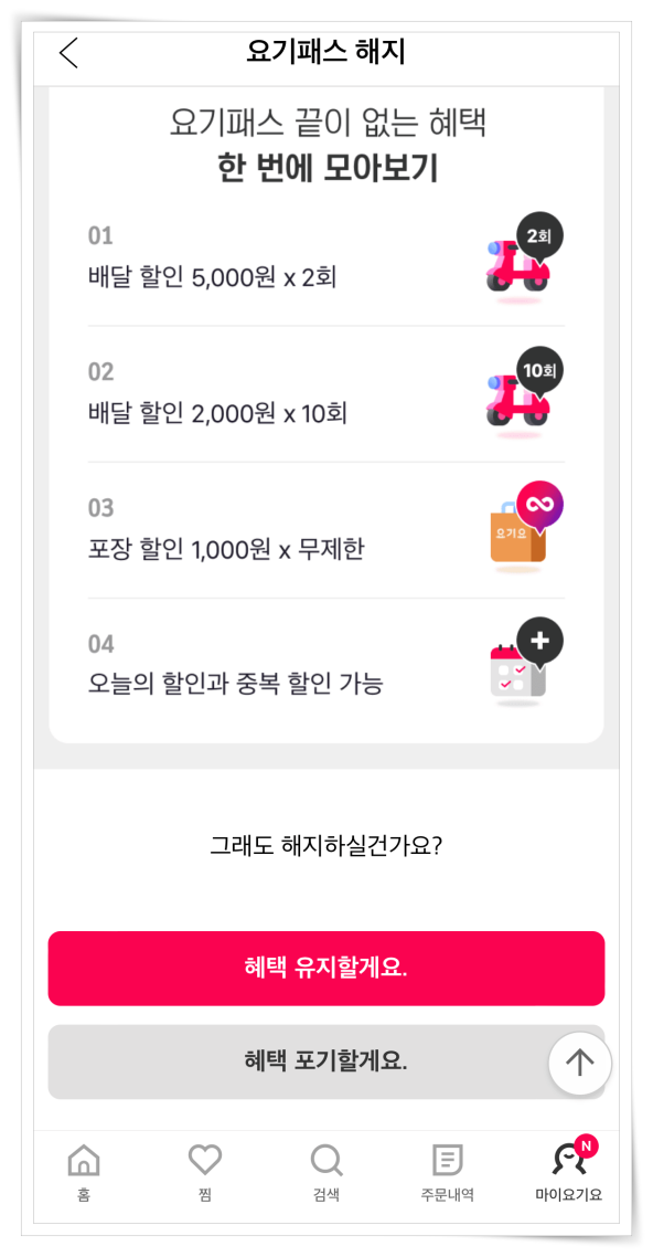 오늘은 요기패스 해지 방법을 알아볼게요. 코로나가 시작된 지 벌써 2년이라는 흘렀네요. 집콕생활을 하면서 애들 엄마로서 제일 걱정이 되는 부분이 매 끼니를 해결하는 것이었지요. 매일 같은 반찬에 세끼나 먹어야 하고 이제는 특별하게 만들 반찬 종류도 없어 지겨워집니다. 집콕생활하면서 다른 활동이 제한되면서 먹는 재미로 힐링하고 있지만 매일 맛있는 음식을 챙겨 먹기가 쉽지 않아 다른 방법을 생각해 보았는데요. 요즘 배달 문화가 발달하여서 한식, 중식, 일식, 야식 그리도 디저트까지 집 앞까지 배달이 된다니 신세계를 보았습니다.