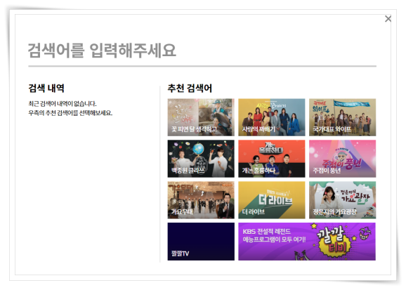 1. KBS 홈페이지 우측 상단 "검색"을 클릭해 주세요.