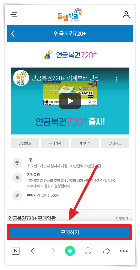 1. 공식홈페이지 연금복권 탭에서 "구매하기"를 클릭해 주세요.