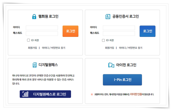2. 웹회원 또는 공동인증서 로그인을 진행해 주세요.