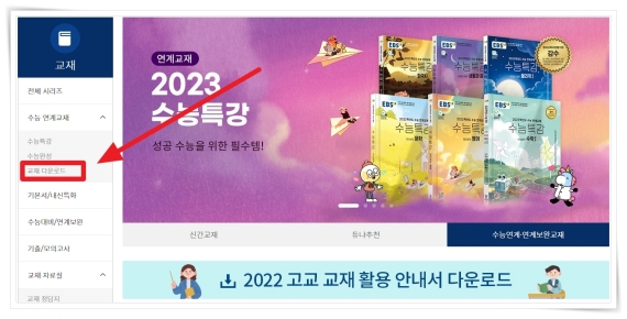 2. 좌측 메뉴에서 "교재 다운로드"를 클릭해 주세요.