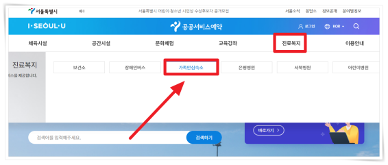 2. 메뉴에서 "가족안심숙소"를 찾아 클릭해 주세요.