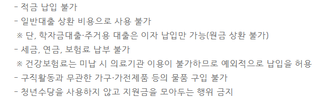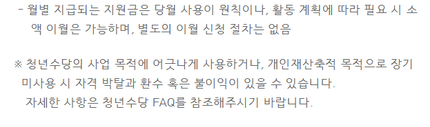 청년수당 사용처 및 불가항목 안내