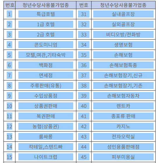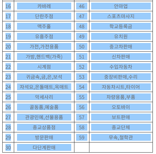 사용 불가 업종