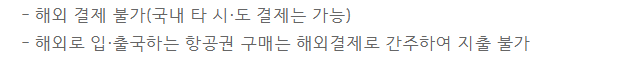 ④ 해외 입·출국 항공권 등 해외 결제 불가