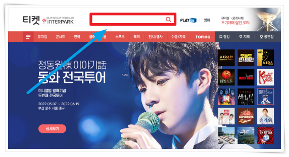 1. 티켓팅 홈페이지 상단 검색창에 "경복궁 수라간"을 검색해 주세요.