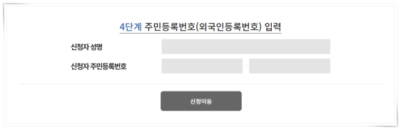 5. 주민등록번호 및 신청자 성명을 입력해 주세요.