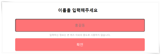 2. 이름과 성별을 입력해 주세요. 입력된 정보는 퀴즈 용도 이외에는 사용되지 않습니다.