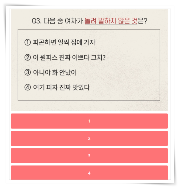 3. 총 5개의 문항에 생각하는 답을 선택해 주세요.