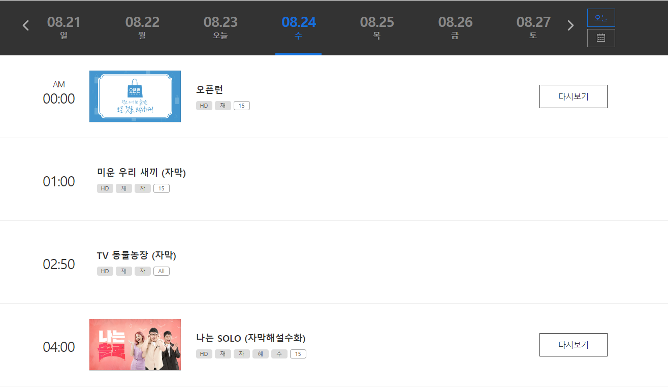 4. 이 밖에도 편성표로 일일 방송 시간을 알아보실 수 있어요.